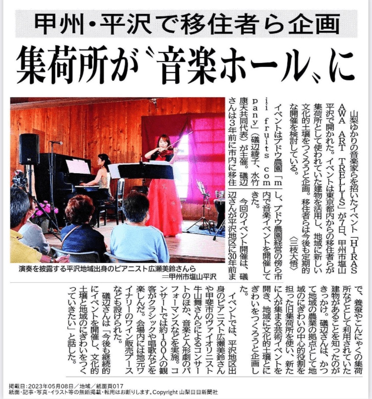 山梨日日新聞に掲載されました