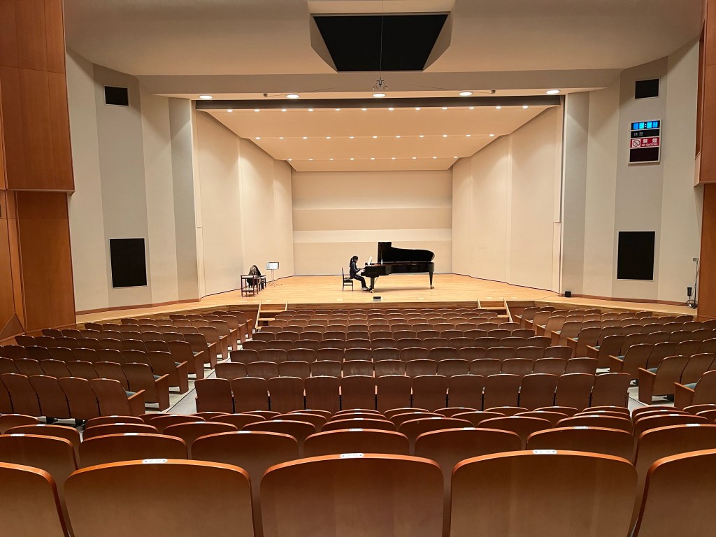 今日は朝から教室の発表会で毎年お世話になっている音楽ホールで練習させて頂いています。2週間後に本番があるAちゃんを連れて。響かせかたなど感覚掴んでほしいな。