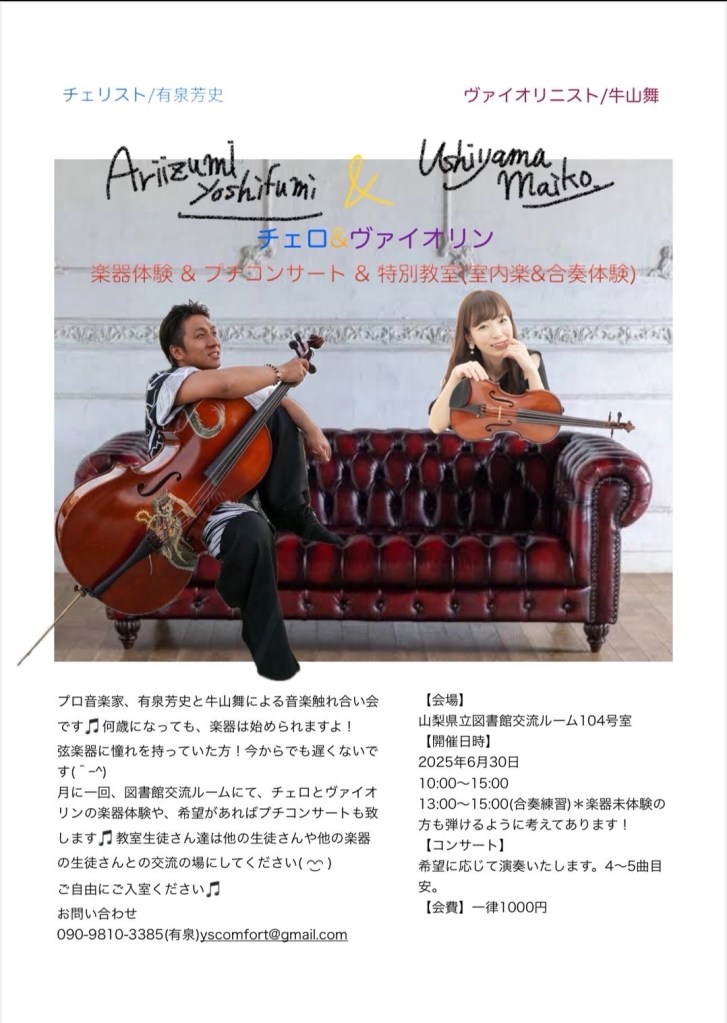楽器体験特別教室のご案内です✨