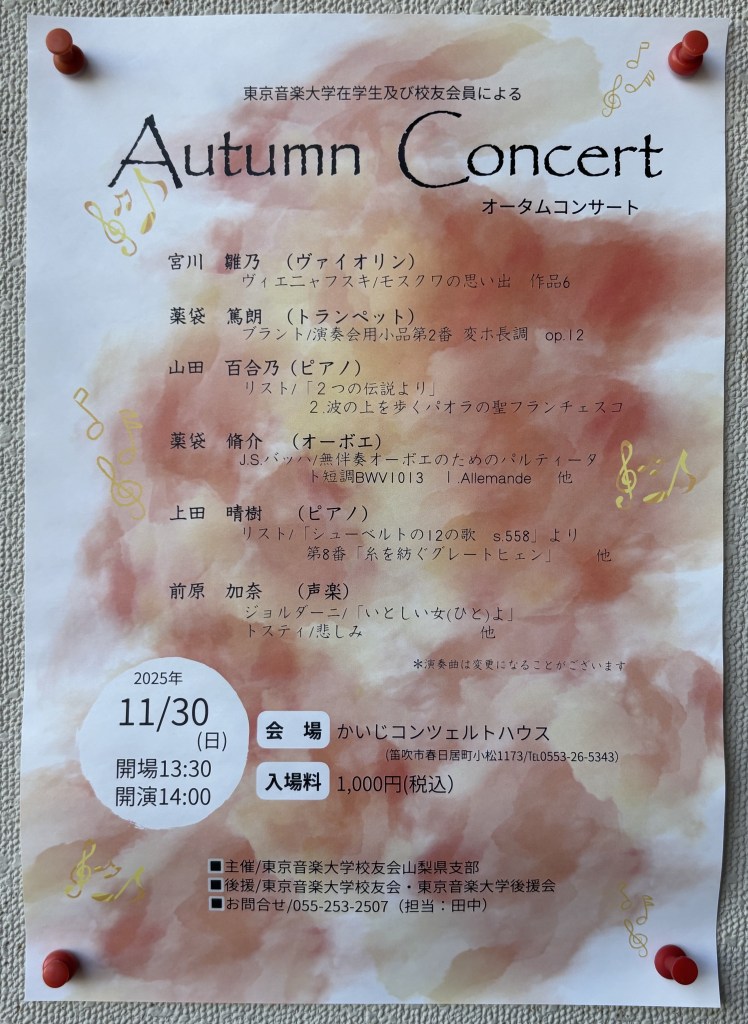 11/30母校東京音楽大学の後援会(校友会)山梨県支部のコンサートでした。